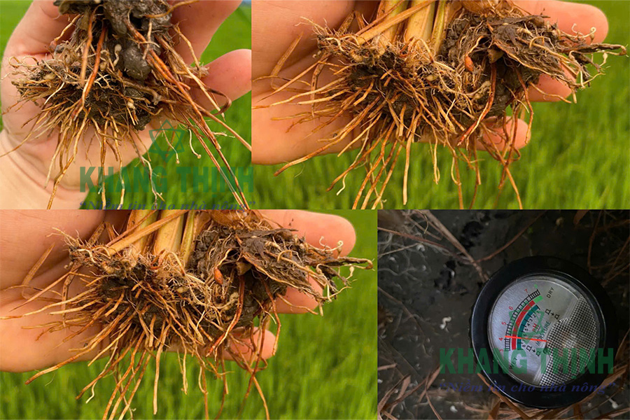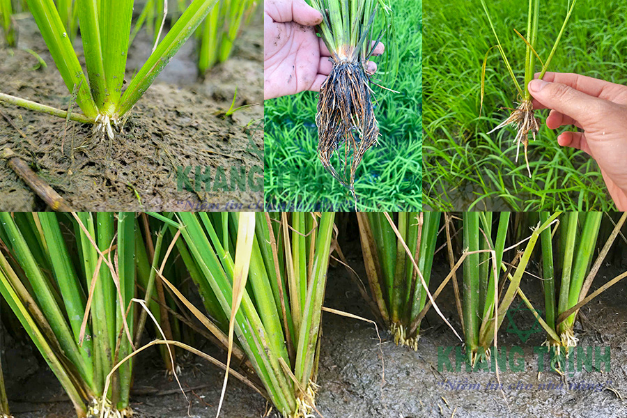 - Trên rễ : rễ có màu đen , không có rễ mới nhiều, ngửi có mùi tanh hôi.