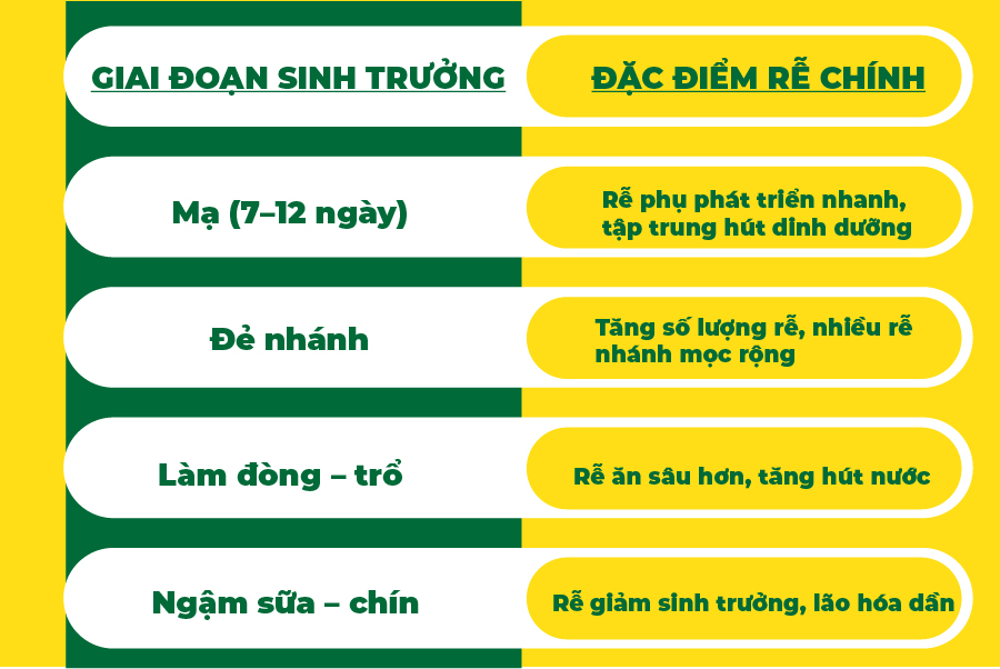 • Sự phát triển của rễ qua các giai đoạn sinh trưởng.