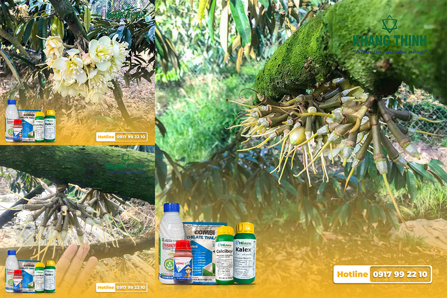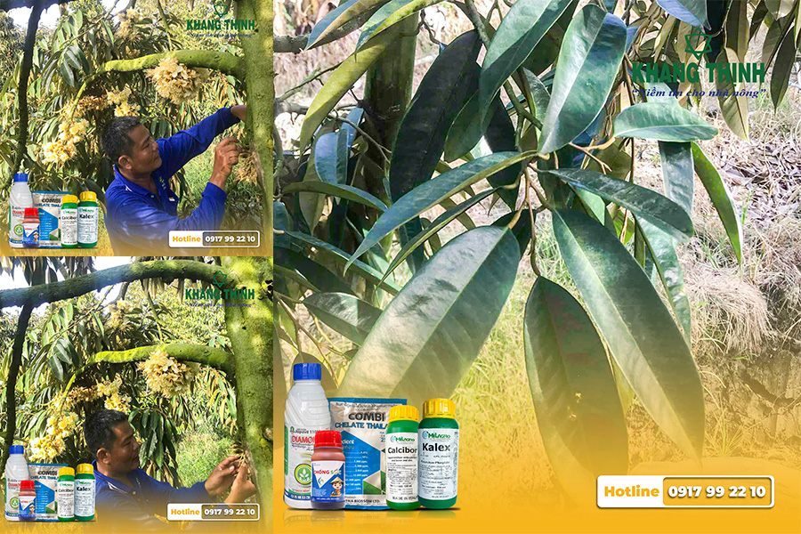- Tiến hành phun Calibor 500ml + Chống Sốc + Combi 25gr giúp tăng cường khả năng chống chịu khi gặp thời tiết bất lợi, tăng khả năng thụ phấn, đậu trái.